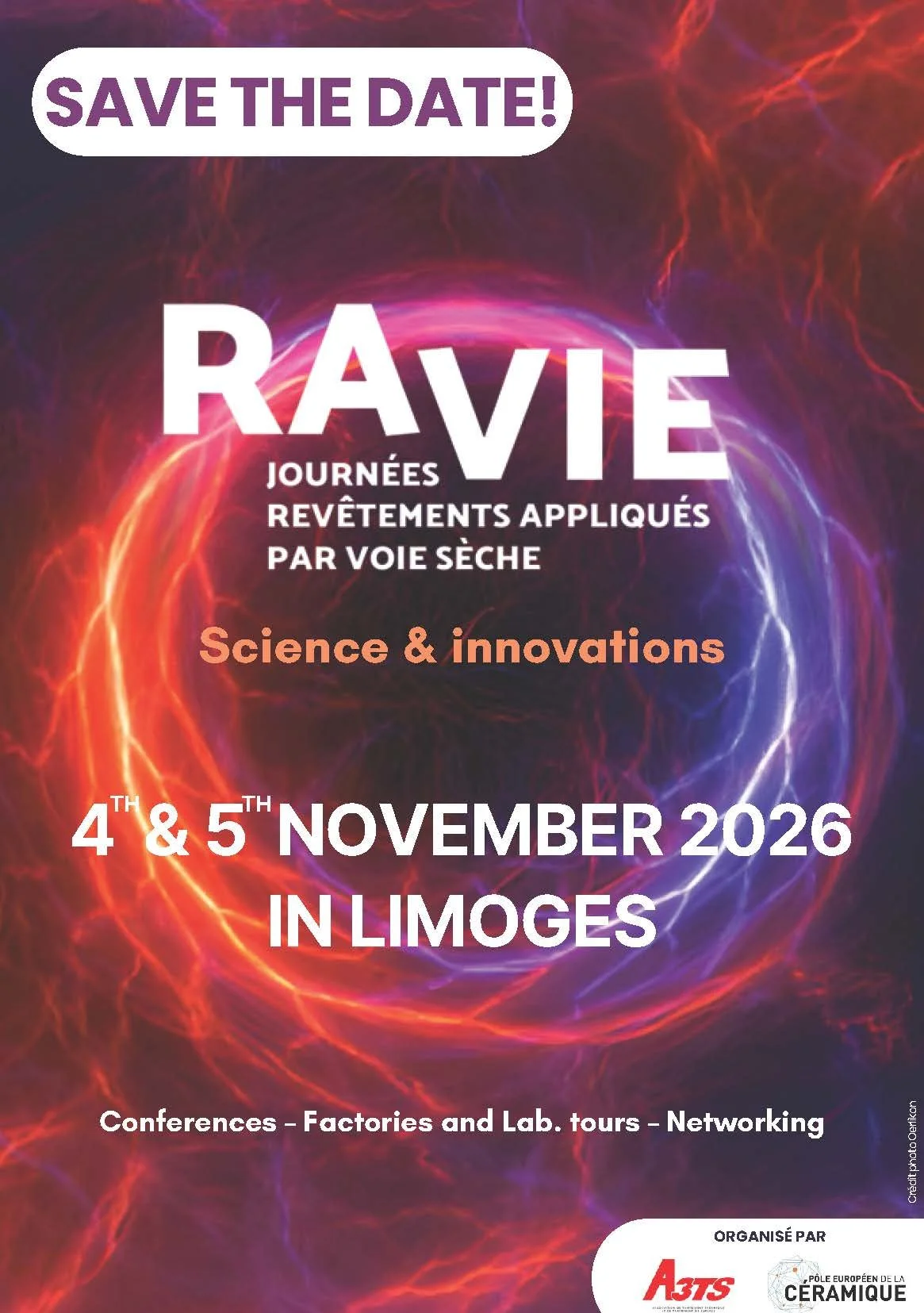 RAVIE 2026 - Journées revêtements appliqués par voie sèche mercredi 4 novembre 2026 09:00 jeudi 5 novembre 2026 18:00 Google Agenda ICS SAVE THE DATE !